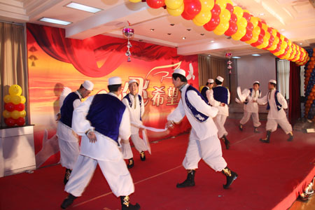 團(tuán)拜會上,還為大家表演了精彩的文藝節(jié)目,這些節(jié)目都是由公司員工及員工子弟表演。