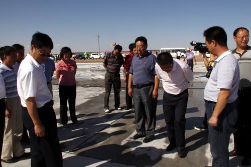 8月21日,由喬新山局長(zhǎng)率領(lǐng)的民航西北管理局工作檢查組一行蒞臨金昌機(jī)場(chǎng)飛行區(qū)施工現(xiàn)場(chǎng)檢查指導(dǎo)工作。在飛行區(qū)停機(jī)坪建設(shè)工地,在了解到公司金昌機(jī)場(chǎng)項(xiàng)目部?jī)H用了二十五個(gè)晝夜完成了總面積2.65萬(wàn)平方米停機(jī)坪道面工程的情況后,對(duì)大家的辛勤勞動(dòng)給予了充分肯定,并鼓勵(lì)廣大建設(shè)者繼續(xù)鼓足干勁、克服困難,發(fā)揚(yáng)求真務(wù)實(shí)、艱苦奮斗的作風(fēng),確保工程按期完工。