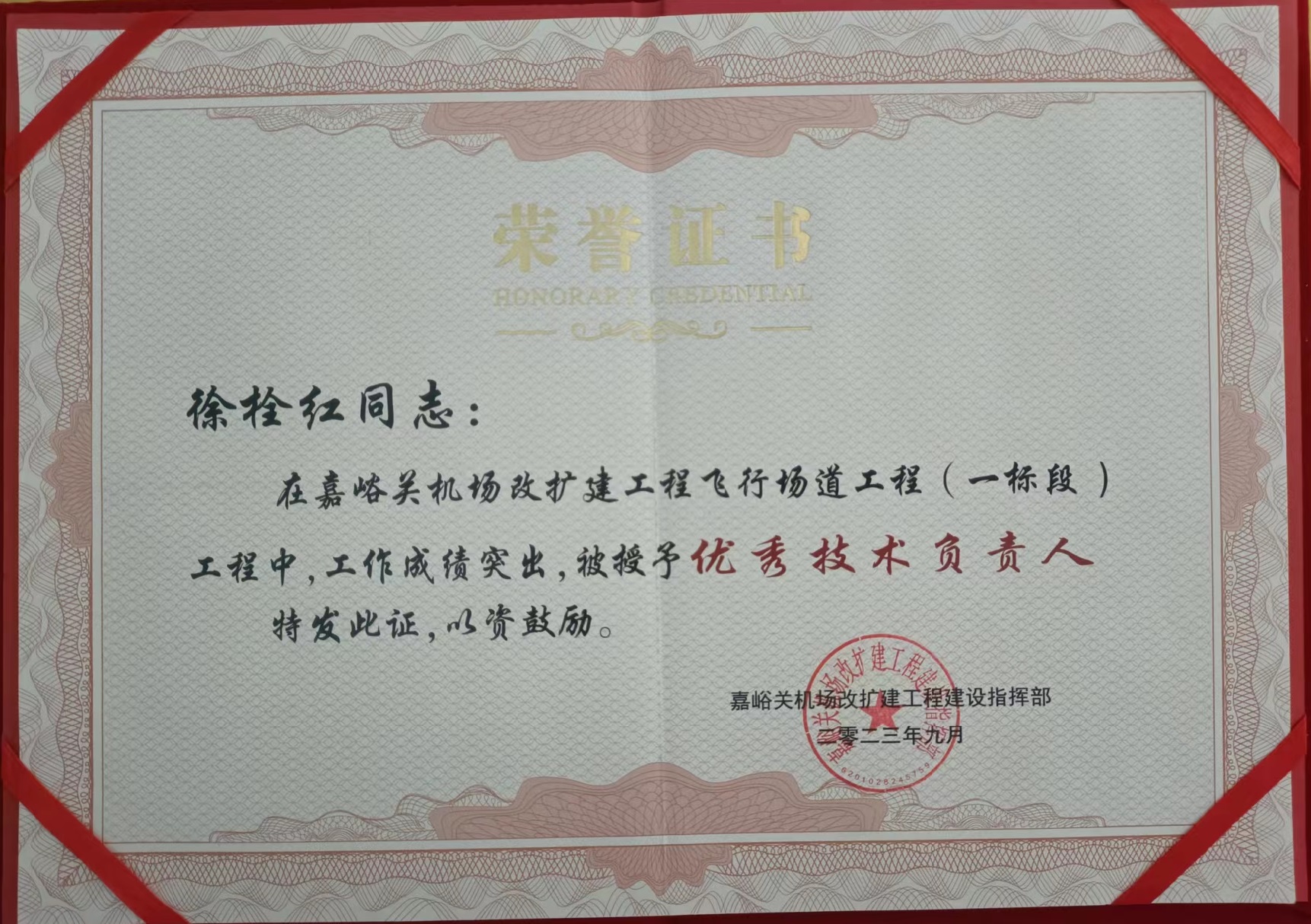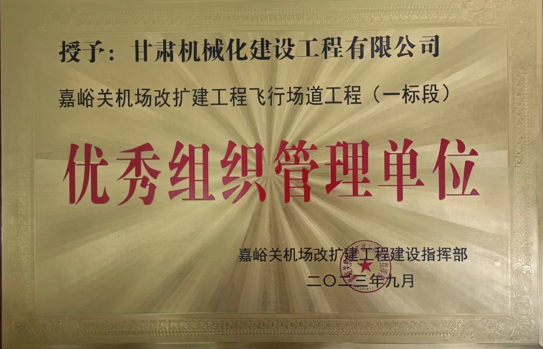近日,嘉峪關(guān)機場改擴建工程建設(shè)指揮部對在嘉峪關(guān)酒泉機場改擴建工程中作出重要貢獻的參建單位給予通報表彰,公司榮獲“嘉峪關(guān)機場改擴建工程飛行場道工程 (一標段)優(yōu)秀組織管理單位”稱號,徐栓紅同志被授予“優(yōu)秀技術(shù)負責人榮譽稱號”。?